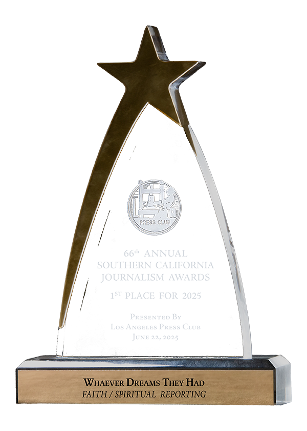 Whatever Dreams They Had is the First Prize winner of the 2025 Los Angeles Press Club award for Faith/Spiritual Reporting.